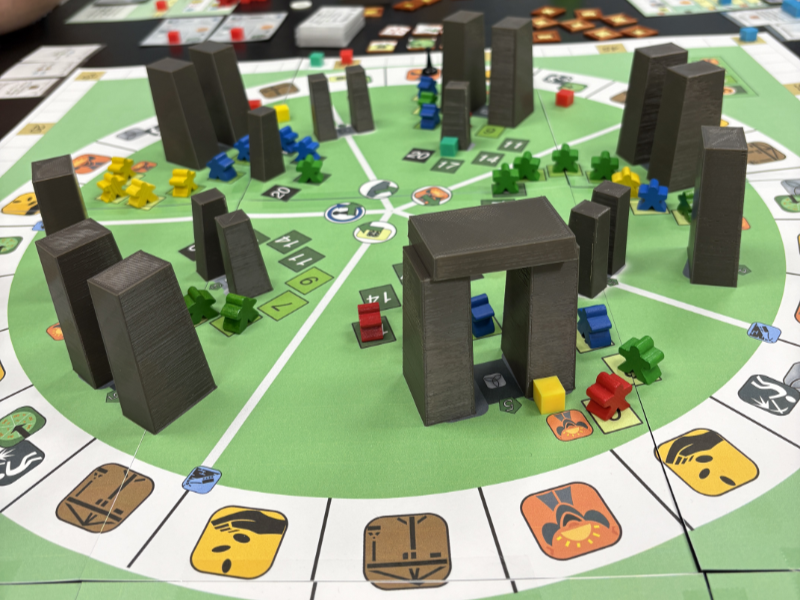 1-5 players | Ages 12+ | 90-120 minsYou and the other Elders in your neolithic village have heard about the great stone circle built in the South, and you think it's a wonderful idea. (Think of the tourism! The merch! The gift shop!) So you have all determined to build a henge, a stone circle of your own. You will quarry the stones, carve them for extra holiness, transport them to the site, and install them in the Henge, all under the direction of the Master Druid (who is holy, but also bribable). You will also sponsor your own Druids to line the Druid Paths at the Henge. Do your part, and if you do it well enough, you could become the Village Chieftain in the new year!